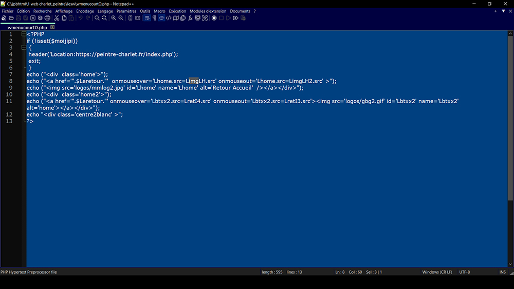 J'ai un début de problème de vision et j'ais donc paramétré tout en PHP même pour écrire du texte. et en couleur le bleu/texter blanc, rien d'autre.