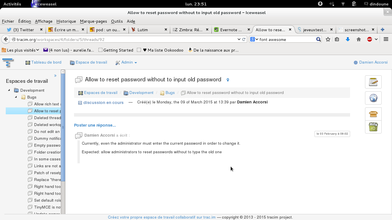 Je suis le développeur de Tracim, un logiciel web collaboratif de gestion et partage des connaissances et de versionning de fichiers.