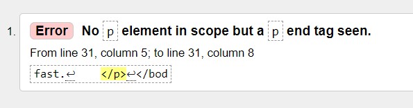 Mais visiblement, on ne peut pas mettre une liste <ol>, ou <ul>, dans un paragraphe <p>. C'est le Validator du W3C qui me le dit. Voici son message :