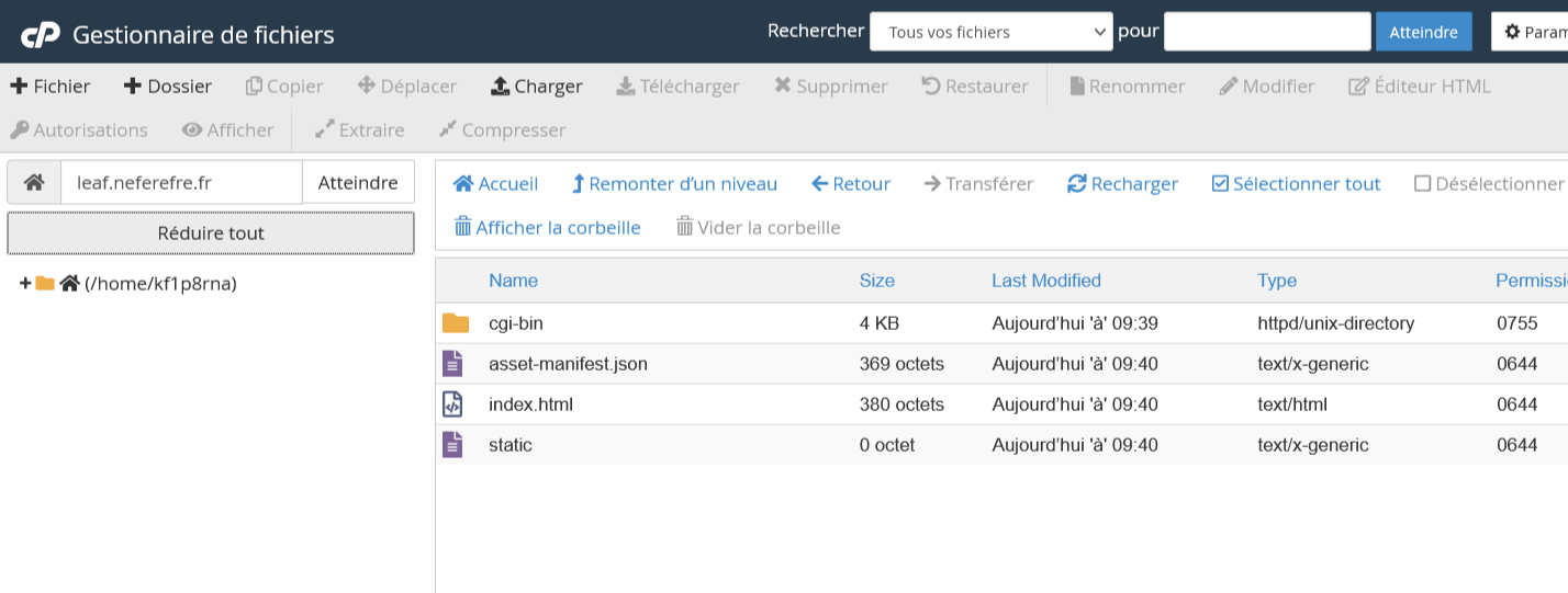 J'ai voulu aller vite, j'avais pas fait un compte ftp, et j'ai 'chargé' le dossier 'static' à partir du cPanel et apparemment il aime pas, il a chargé un fichier vide avec le même nom à la place..