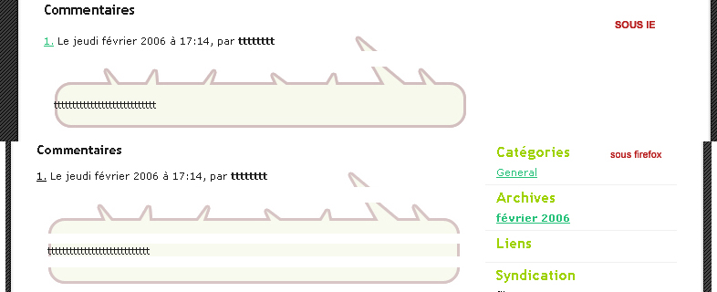 Bonjour, je suis en train de creer un theme pour DOTCLEAR, tout va bien, a par a ce moment la, lorsque j'essaie de creer un cadre pour l'affichage des commentaires :