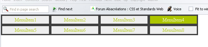 P.S.: Si elle peut sembler futile, ma démarche est justifiée par le fait que je trouve beaucoup plus facile de lire un tel menu de navigation sur deux lignes, qui plus est avec une police agrandie. Les bordures doivent servir à bien en délimiter les éléments.