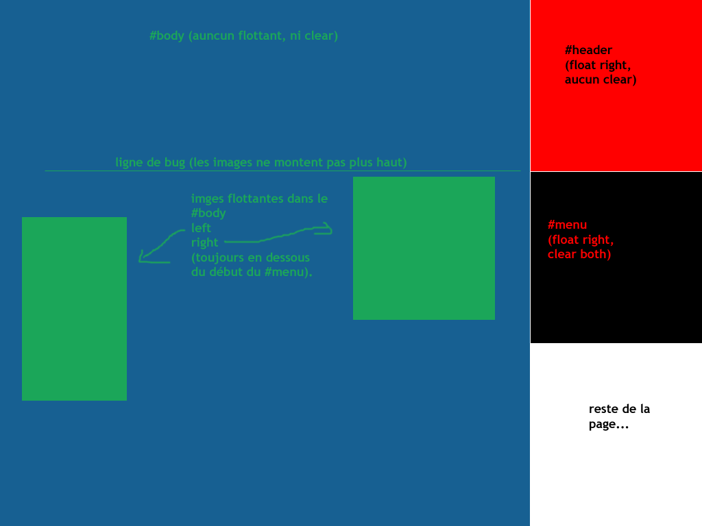 Tout est bien en place mais.... si je mets des images flottantes dans mon body, elles ne remontent pas au dessus du bas du header (elles restent au niveau du menu et pas plus haut).