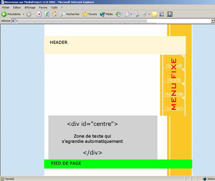 Le problème, c'est que sous le menu FIXE à droite qui est en flash, je voudrais insérer une image qui "s'auto-répéte" jusqu'à mon PIED DE PAGE en bas lorsque mon texte situé dans la zone éditable est long ...