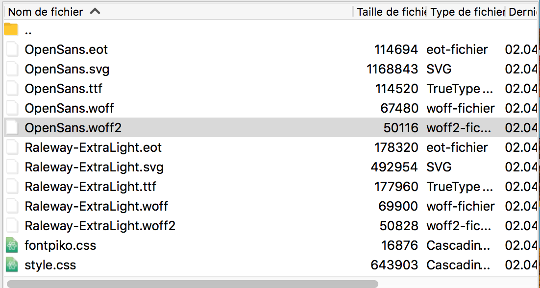 Oui, je suis sûr que mes polices se trouvent dans le même dossier que ma feuille de style css.