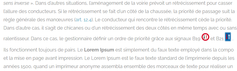 Je souhaite ajouter une petite image dans du texte pour améliorer la compréhension du texte. Par exemple, lorsque je donne le code d'un panneau routier, j'ajoute l'illustration de ce panneau juste après. J'utilise Wordpress. Il est possible d'aligner l'image horizontalement mais pas verticalement. Je voudrais descendre légèrement les images pour ne pas avoir un interligne énorme là où j'ai ajouté des images.