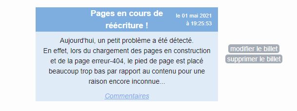 La première est à gauche et mesure 25%. Elle est vide. La deuxième contient le billet et mesure 50%, la troisième est à droite et contient l'administration du blog (modifier/supprimer).