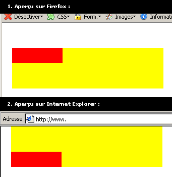 Je rencontre un problème d'affichage différent entre Firefox et Internet Explorer sur un exemple tout simple. Et là c'est IE qui semble afficher correctement ce que je veux.