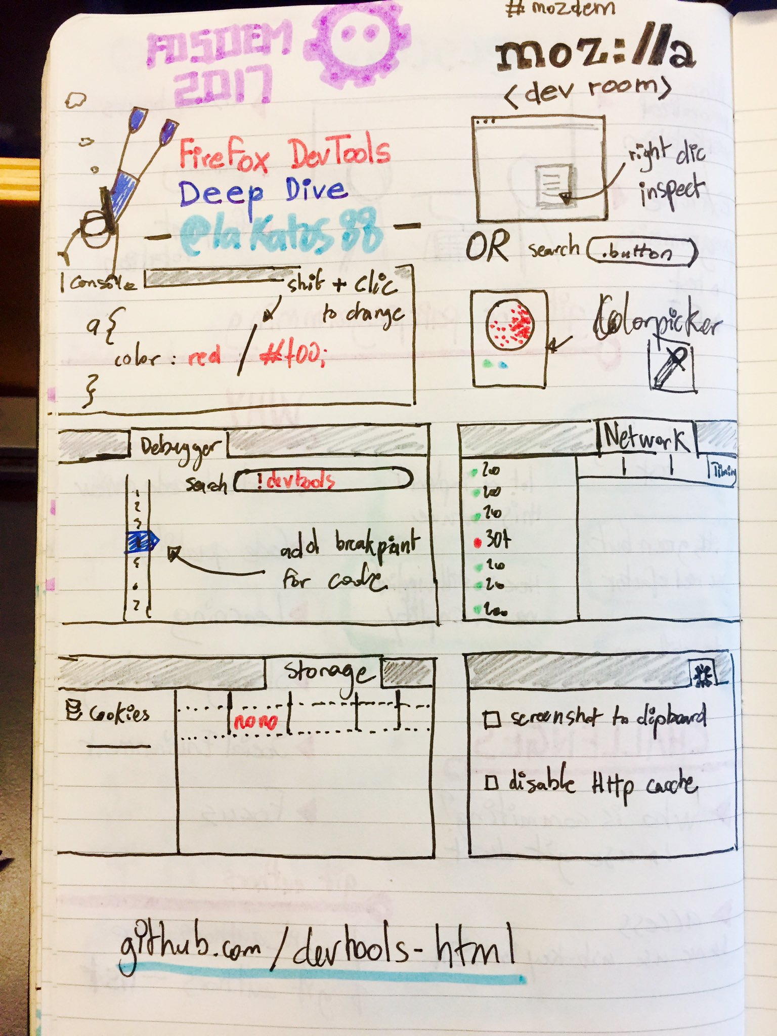 Prise de notes aperçue sur Twitter lors du FOSDEM à propos des DevTools de Firefox : https://twitter.com/_flexbox/status/827833599621730304